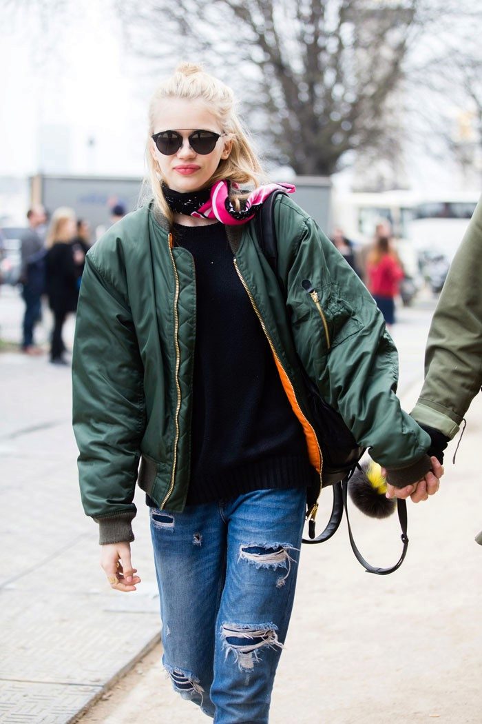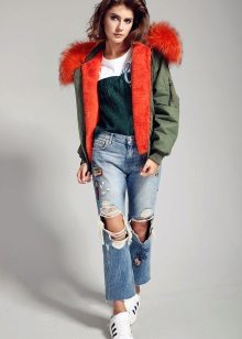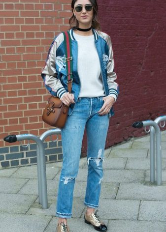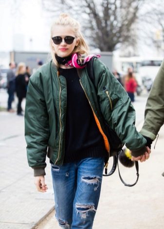 Bomber is very popular with women. It will easily fit into a classic bow, complement informal boyfriend jeans.