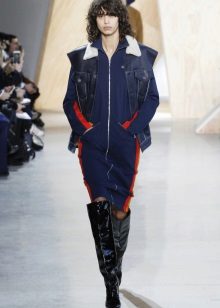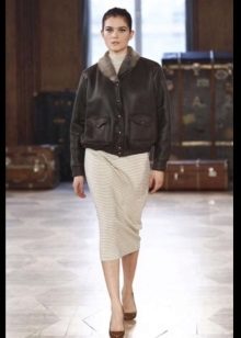 - Bomber and dress or skirt - a sexy combination for all occasions. In the office, in the cinema, shopping, this outfit is appropriate everywhere. Of the shoes, preference can be given to boots with high-topped boots or ankle boots.