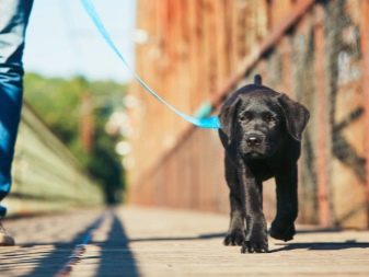 As soon as the Labrador got used to the collar, it is worth adding a leash to it. Initially it is better to attach it to the collar and allow the dog to run around with it on his own. To get the dog accustomed to a walk next to the owner, it is worth walking alongside the dog, but not holding it. The next step will be a small control and direction of the pet without tightening the leash, so as not to hinder the movement of the dog. As soon as the Labrador is used to being close to its owner and calmly reacting to a leash with a collar, the process of schooling can be considered successful.