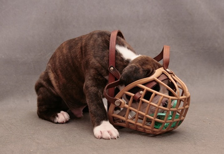 According to dog handlers, to teach a dog to a muzzle is from a very young age.