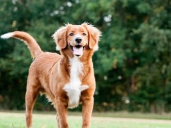 This dog is also called a toller. She looks like a golden retriever and a Labrador at the same time. The task of tollers is rather complicated: they lure ducks so that they find themselves at a distance of a shot, and then bring killed birds. New Scots retrievers appeared relatively recently, but at the same time they have already gained very great popularity in European countries, especially in Scandinavian ones. Tollers are rather low (height at withers - up to 50 cm).