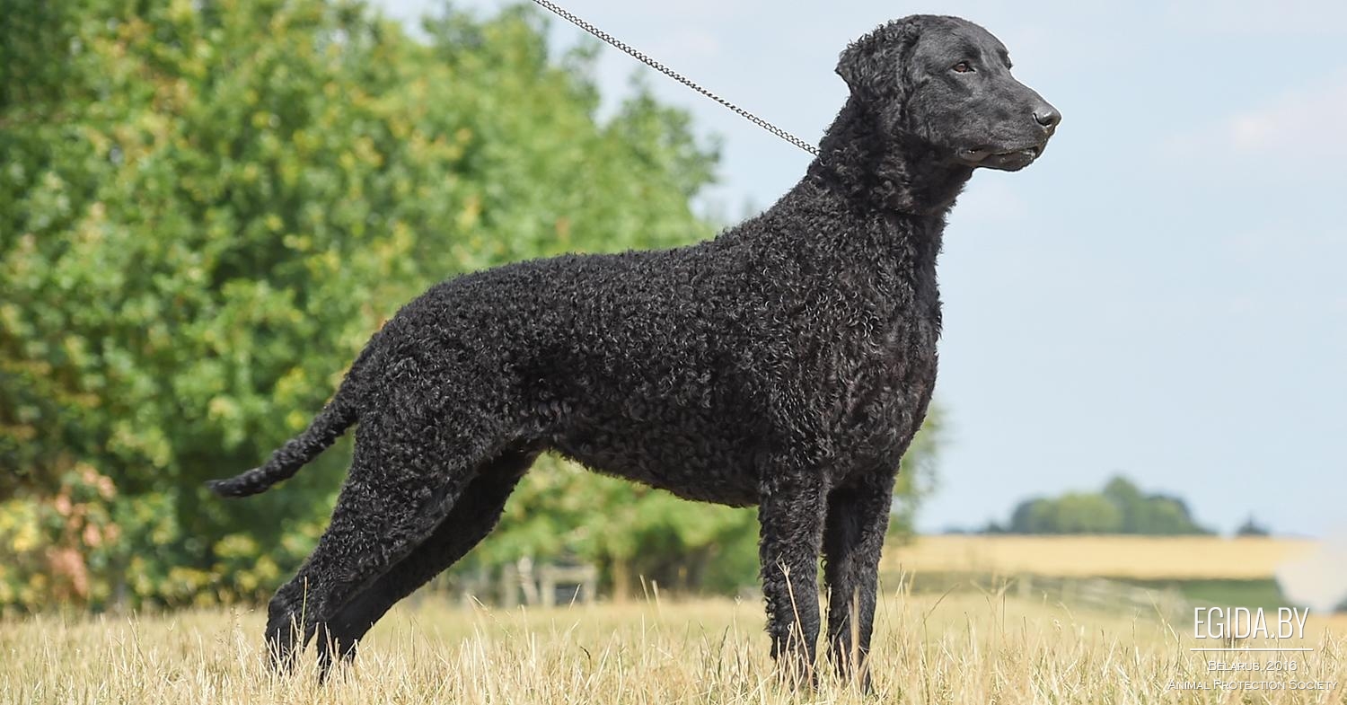 This breed is called "Curley." Curly Coated Retrievers are the oldest. This is a mix of Irish Spaniel and Newfoundland. Labradors, poodles and setters are also relatives of such dogs. Curly Coated Retrievers are less contact than Labradors. They are more restrained, calm.