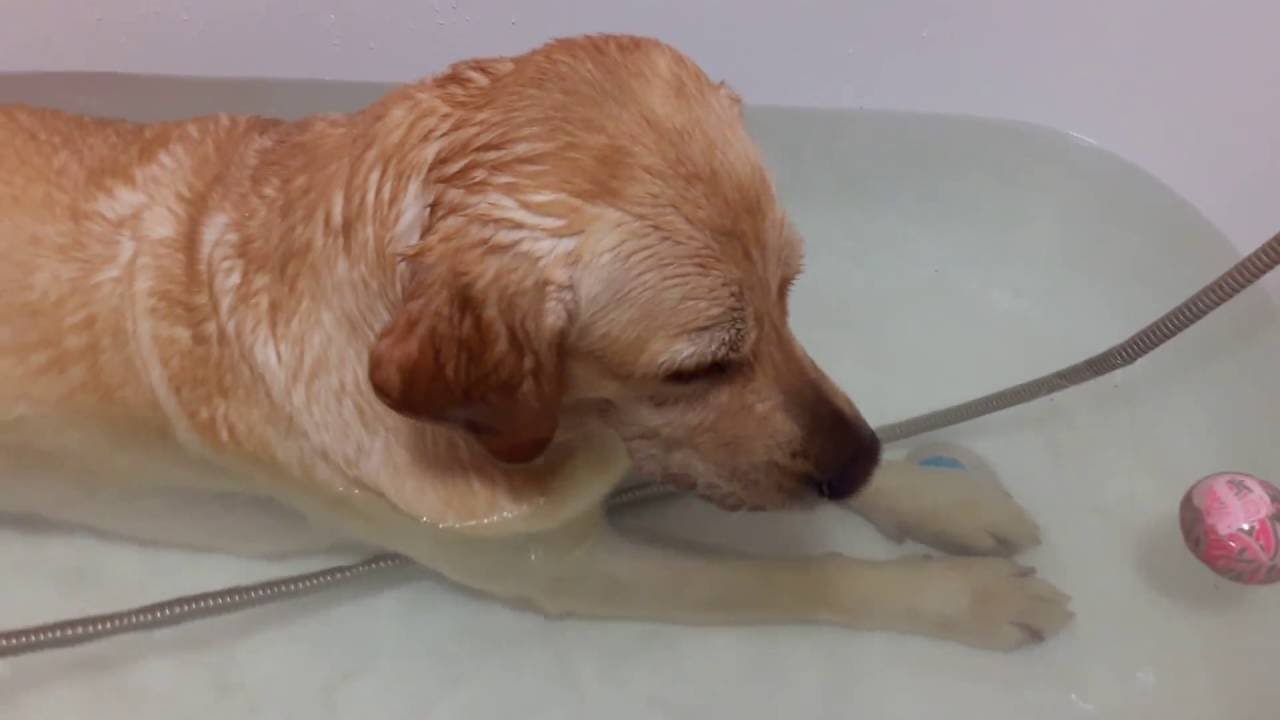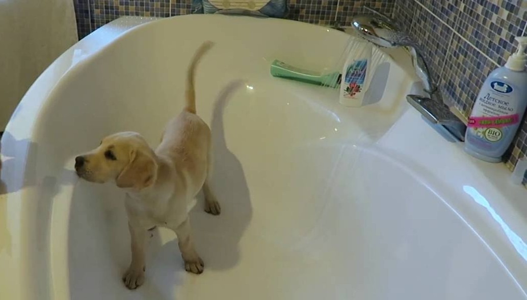 - After walking they are taught to wash their paws. When the puppy grows up, he may well jump into the bath and place his paws under the stream of water turned on.