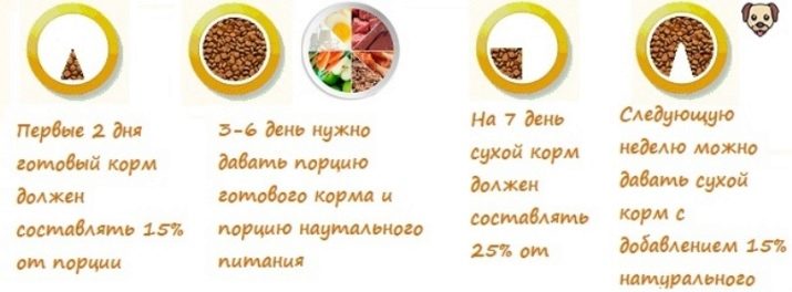 If the owner decided to choose a mixed type of food, then he should know that the puppy should be gradually taught to use dry food as the main one, first soaking the granules in water. Once a day, the baby gets slices of lean meat.