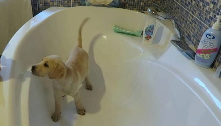 A puppy can be immersed in a bath filled with water for a third, and allowed to splash in warm water, ensuring that the liquid does not get into the ears, eyes and nose of the animal. Then the baby is wiped and allowed to dry in warm, gently combed. This procedure is good for the health of the baby's skin and coat.