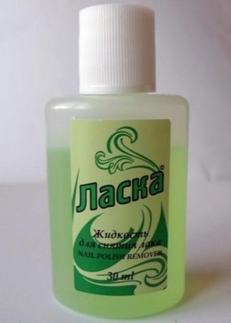 To remove the remaining stain, use a tool that dissolves the varnish well. Typically, this task perfectly cope traditional nail polish remover. A liquid without acetone is more benign, but it is not always effective. Modern nail polish removers often contain additives that change the color of the composition, and it can be quite saturated. Colored fluids for light carpets should not be used. Acetone will give the best results, but it may be too aggressive both to the color and to the carpet pile itself.