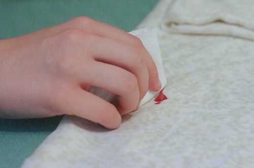 - after that, put the soiled thing on a firm horizontal surface, smooth it out well, put a white cotton fabric under the spot;