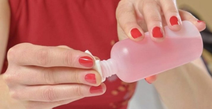 - Next, drip a drop of acetone or acetone containing nail polish remover. For accurate processing, use a syringe or pipette. Apply the selected remedy drop by drop, over the entire surface of the spot until it disappears completely.