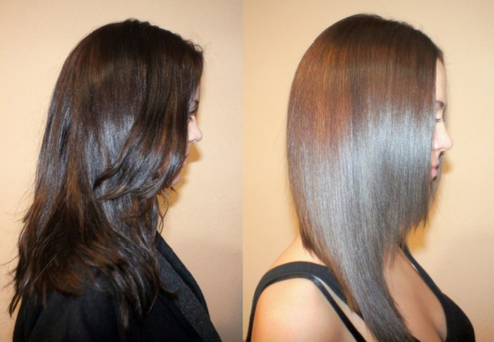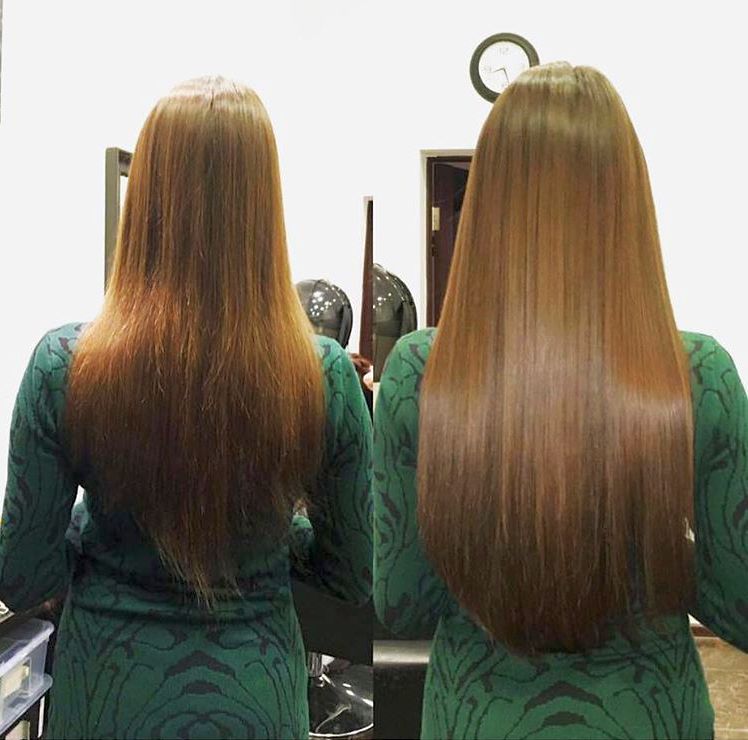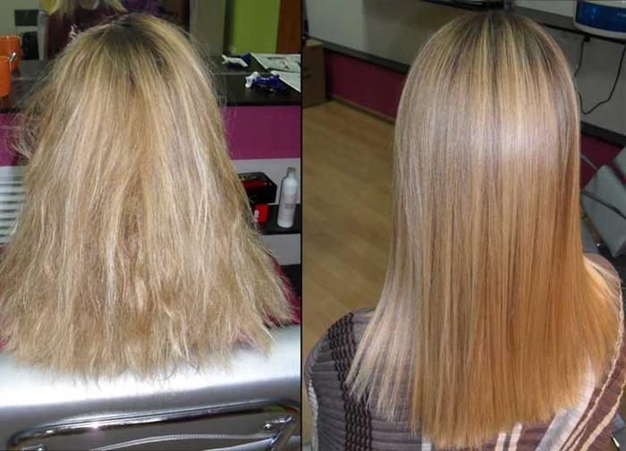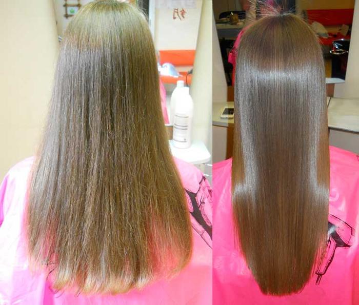 The effect after the procedure is wonderful. Hair becomes more voluminous, straight and obedient, get shine. Unfortunately, the result is not very durable. When washing the head, the protective shell is washed off, and with it the brilliance and volume disappear. With the thinning of the film, the hair will once again start to push, break and become thinner.