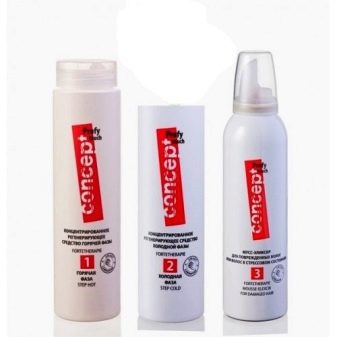 This line appeared recently. The kit consists of three components - means for the hot phase, cold phase and special mousse. The company promises that after use, a thin protective film is formed on the hair, letting in moist air, but protecting the hair from external damage. The main thing is to strictly follow the instructions. For 20 minutes, a hot phase agent is applied to the head (backing away from the roots), which will cause a sensation of heat. Then another 10 minutes is applied "cold", and after using mousse. The entire kit costs about 1,300 rubles. Due to the novelty of the company reviews are present in a small amount, but almost all of them are especially enthusiastic.