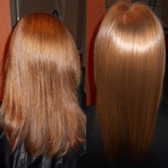 - in addition to nourishing and strengthening, the procedure also has an impact on the external state of the hair, making it more shiny and silky;