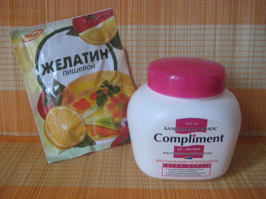 Gelatin should be poured with water, let the granules swell, after which they need to be melted in a water bath until homogeneous, so that no lumps remain. After the mask acquires a uniform consistency, you need to mix it with prepared hair balm based on 1 spoonful of gelatin - half a spoonful of balm.