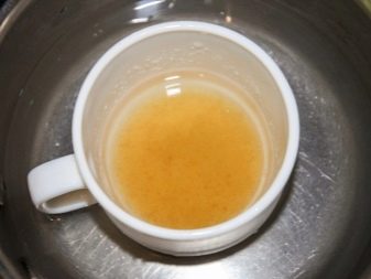 - Pour there three tablespoons of cooled boiling water, close and hold for 20 minutes. In case a part of the powder does not dissolve, but forms small lumps, slightly heat the mixture. Without boiling, break them. If you overdo gelatin on the plate, then it can lose its properties.
