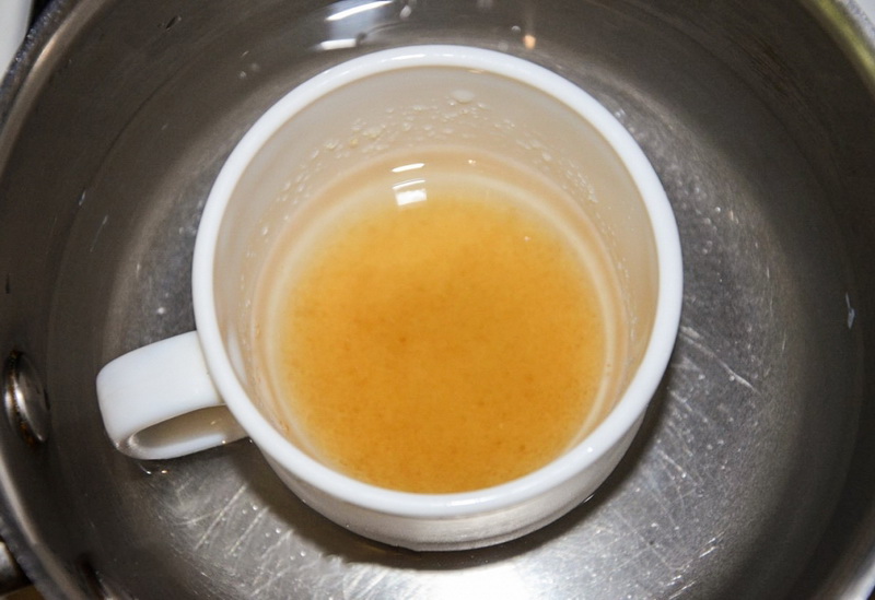 - Put a saucepan on the stove and make a water bath with it. Put the gelatin to warm to dissolve completely, but do not boil it.