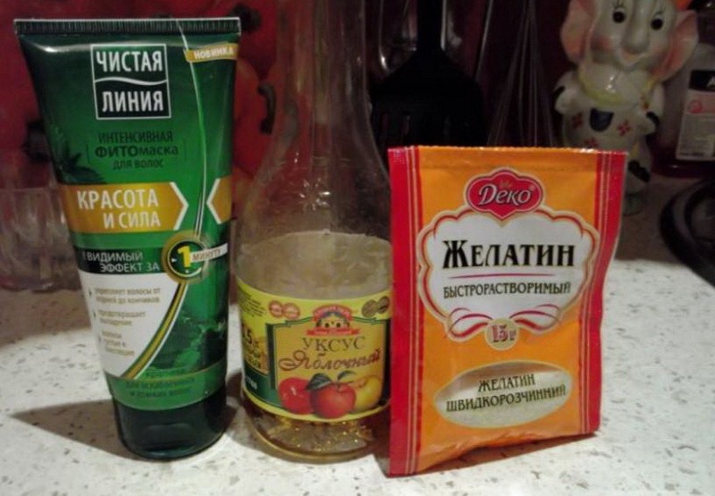 An important advantage of home lamination is also noted that gelatin, as a rule, does not cause allergies, and women with a tendency to similar reactions have to choose carefully any synthetic means. It should be noted that by adding synthetic components such as a balm or a mask to the household, the reaction of the hair may be different. For example, one of the girls added a coconut mask to the classic composition and the result did not just disappoint, but turned out to be the opposite - the tips began to look even drier.