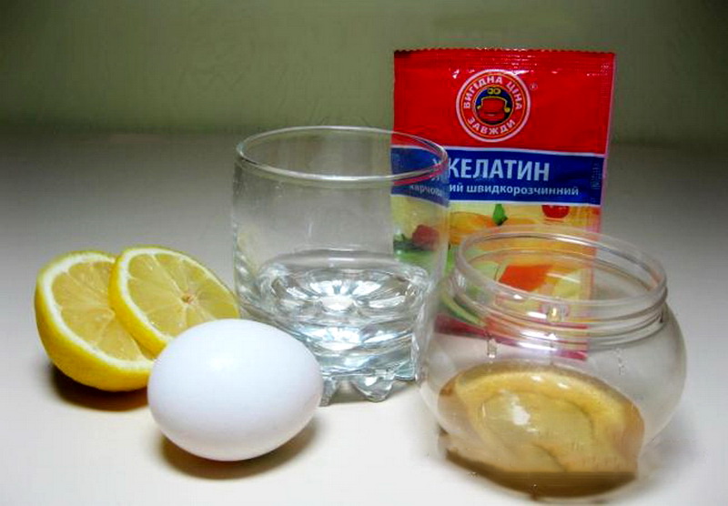 Put the gelatin to swell and pour the yolk into the mixture after 15-20 minutes. If it will be difficult to get a homogeneous mass, you can add some water - the main thing is that the mask consistency be like sour cream. Then add all other ingredients. Keep the mixture on the hair wrapped in a towel for about an hour.