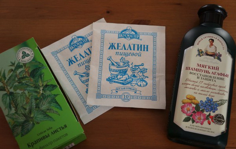 First, prepare the gelatin, fill it with water, and then dissolving all the lumps, pour into it the shampoo. Spread the resulting composition through your hair and wash your hair after 10 minutes. In this case, wrap hair is not necessary. After the specified time, rinse hair.