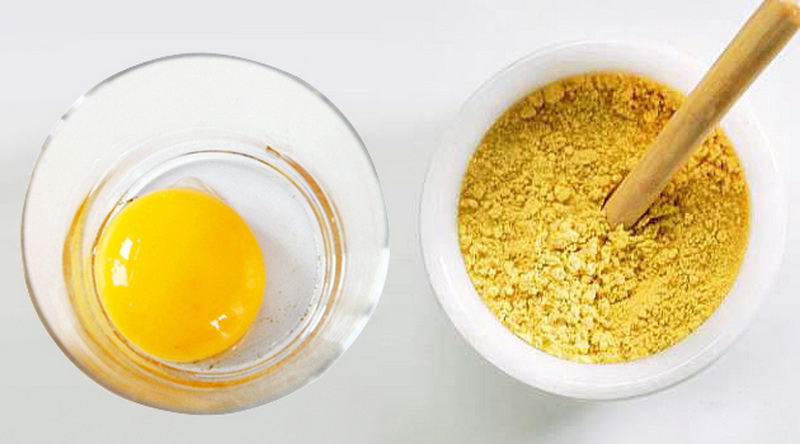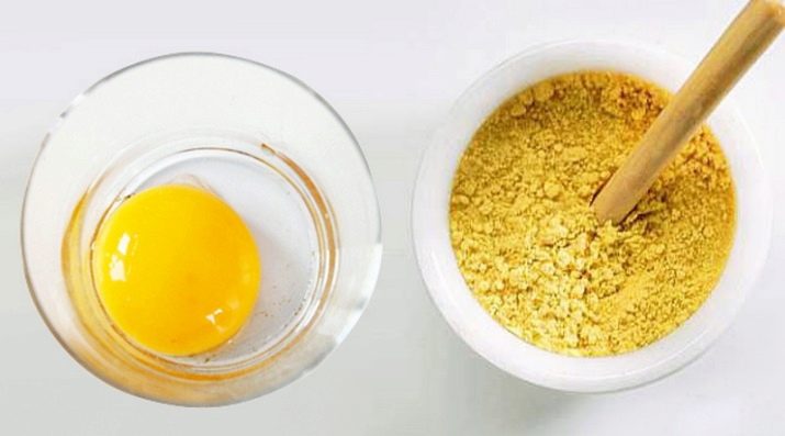 The ratio of ingredients is selected by eye, as long as the resulting composition had the consistency of sour cream. Shake raw eggs in a bowl with a whisk or fork and gradually pour the mustard powder into them. Spread the obtained gruel through your hair, rubbing the strands between each other for better absorption, and then go through the hair with a comb with rare teeth and warm your head. After an hour, the composition can be washed off, while no detergent should be used.