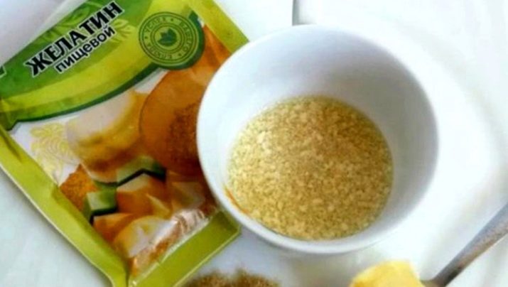 - Similar to the previous version, you first need to pour one tablespoon of gelatin with three spoons of not too hot boiled water. Stir the mixture so that no lumps form, and set to swell.