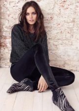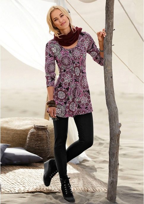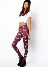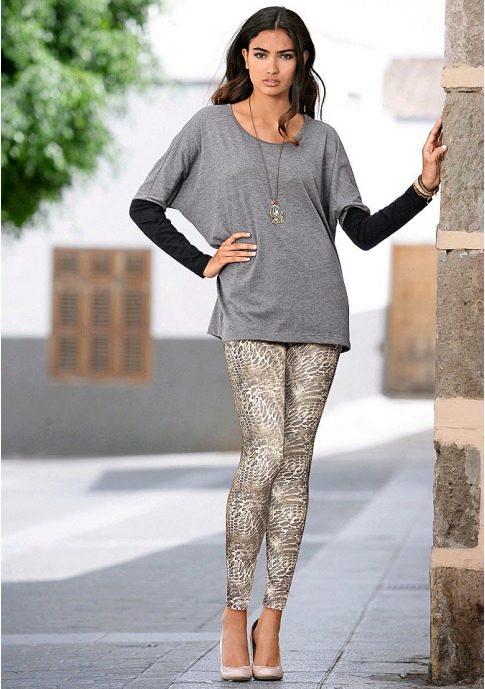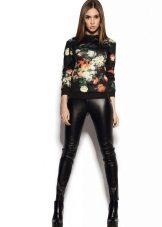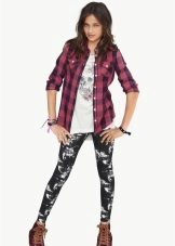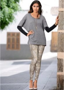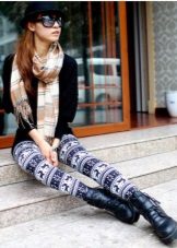 Leggings can be worn with anything. The only thing you need to choose the appropriate top and accessories to match the pattern or color.In this case, the length of the outer clothing, and it can be T-shirts, tunics, dresses, sweaters, must cover the hips and, accordingly, the fifth point. If the top of your color and with pictures, the leggings should be solid. And the same is the opposite.