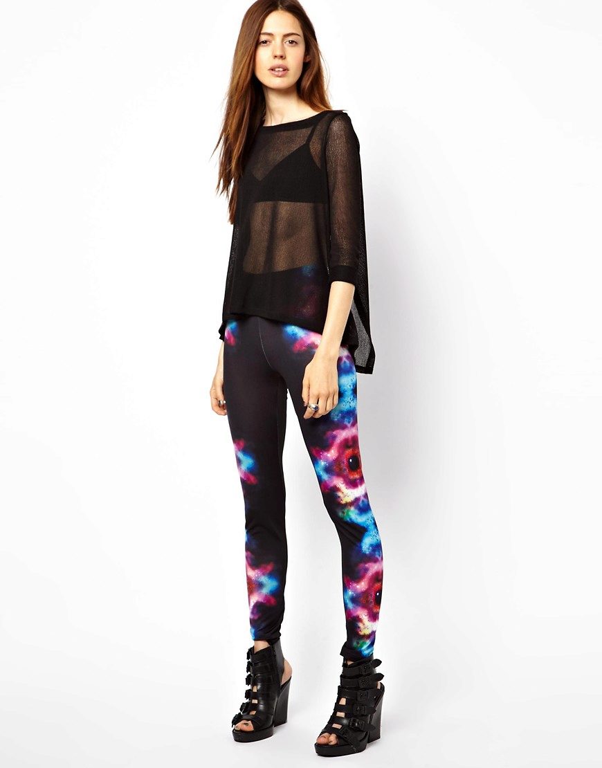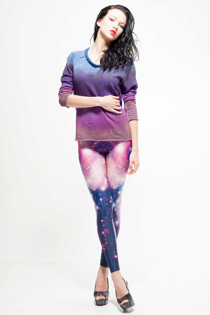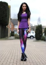 Real furor made space with leggings pattern. For this, designers used real pictures from space. These are types of galaxies and constellations. Pants can be glossy and matte. Shades of the most diverse - purple, pink, lilac blue, black.