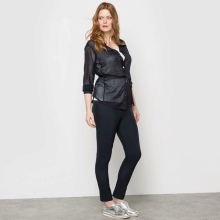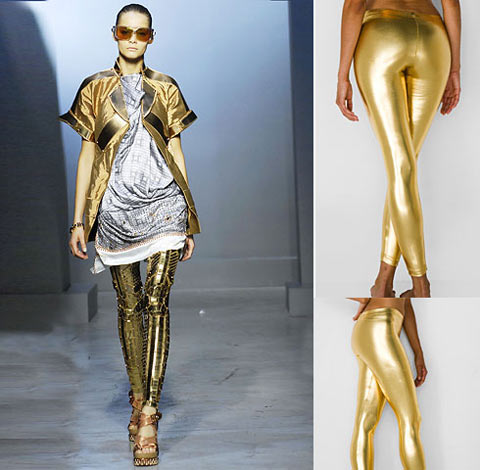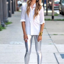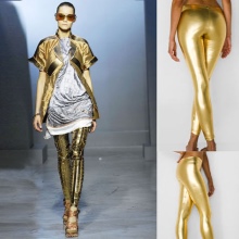 This season at the height of fashion feminine models. Made from fabrics similar to leather, suede and lace materials. In the trend of the so-called metallic fabrics. They can be made in gold, silver and bronze. In this form are offered leggings with black metallic sheen.