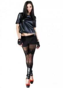 Decorated leggings look very feminine., thanks to various inserts of various materials. It washes velvet or leather. They are decorated with lace, metal studs, laces, rhinestones.
