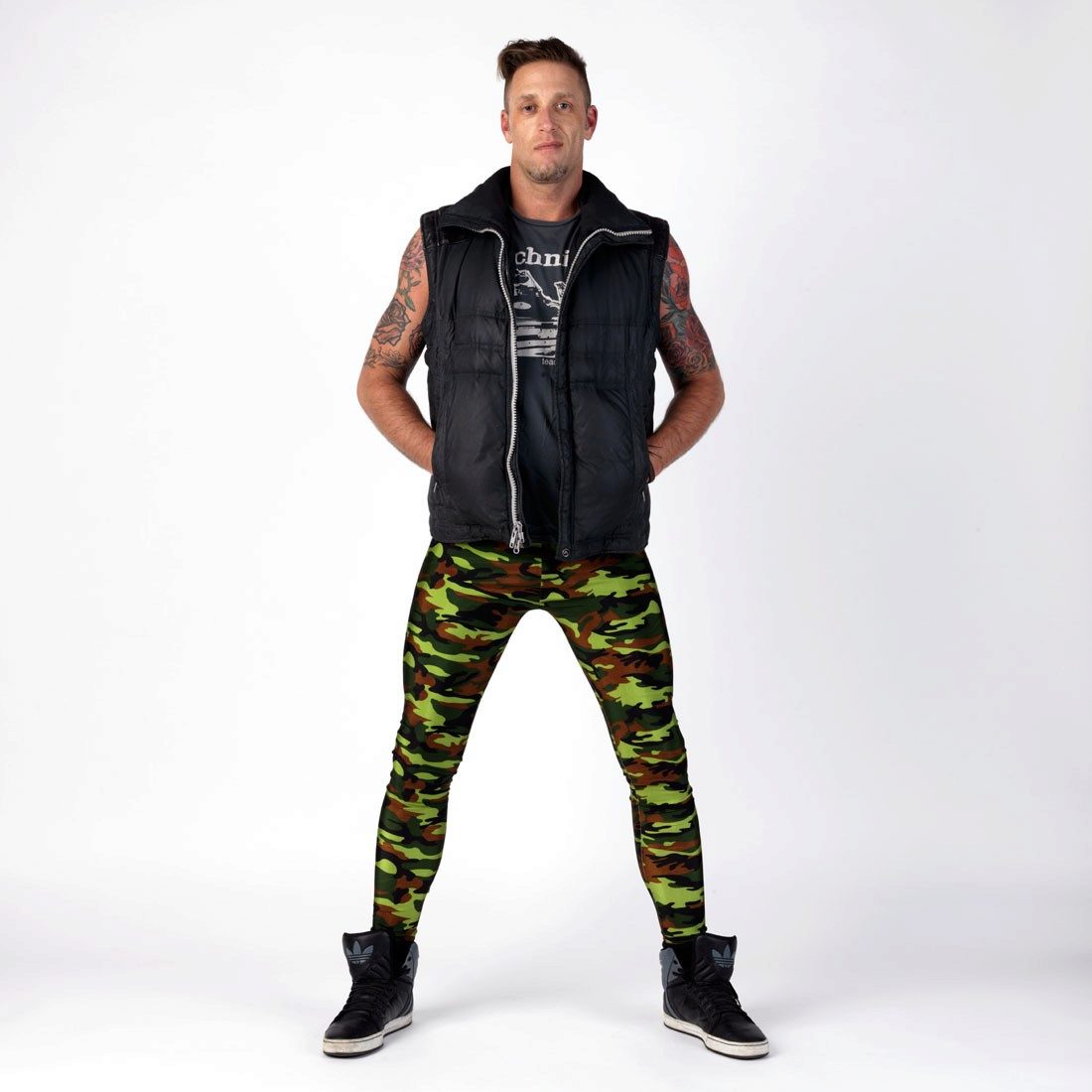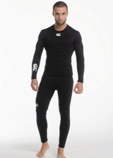 Of course, not only women wear leggings. In men, it has an anatomical insert and a wide belt.