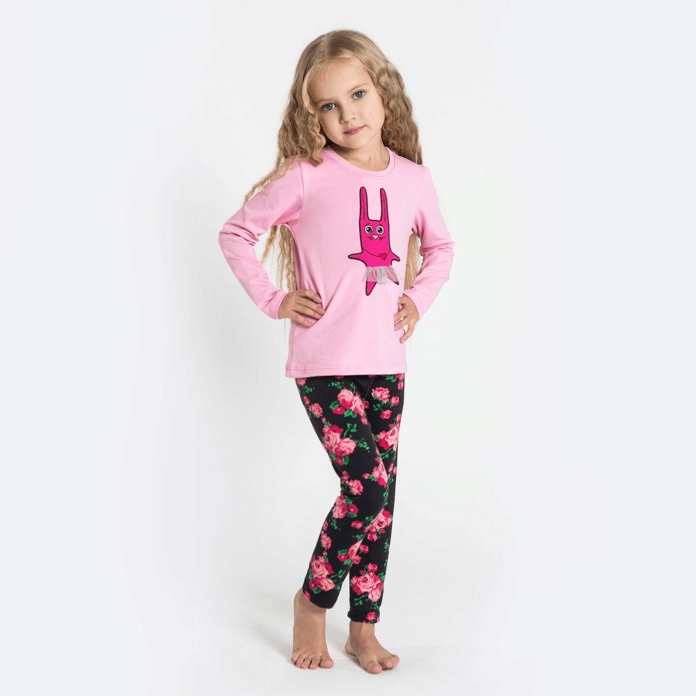 • Print knit leggings similar to the pattern of black marble. Thanks to the white shirt, which favorably sets off the pattern, the print looks fresh and bright.
