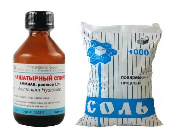 - For cotton and linen clothes, for example, shirts, you can use salt with ammonia. To do this, in one glass of warm water you need to add a teaspoon of salt and the same amount of ammonia. To process the place of pollution by the prepared mix, to leave for a quarter of an hour, then to wash in the usual way.