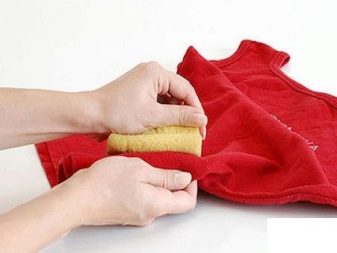- Stain remover. This substance, on the contrary, is suitable for cleaning colored things from stains. For white fabrics you can use bleach. It is necessary to put a fabric folded several times under the spot. It absorbs what remains of pollution. Next, moisten the stain with warm water. Using a cotton pad, pre-moistened with a stain remover, gently wipe the stain, moving from its edges to the center. Disks should be changed as they become dirty. After processing things need its full wash.
