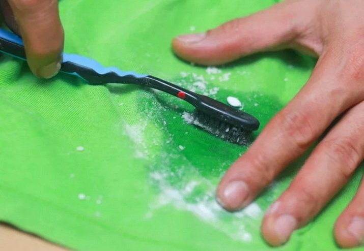 - Baking soda and water. It is necessary to dissolve the soda in water so that the consistency of the paste comes out. Apply the mixture to the contaminated area and leave to dry completely. Remove soda from the product, clean the surface from the remnants of the mixture.
