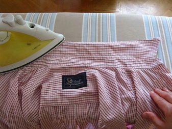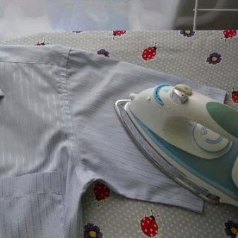 - The shirt is placed by the collar on the surface of the ironing board. From above there should be a seamy side. You need to iron the fabric from the corners. Around the buttons and loops should be smoothed out carefully.