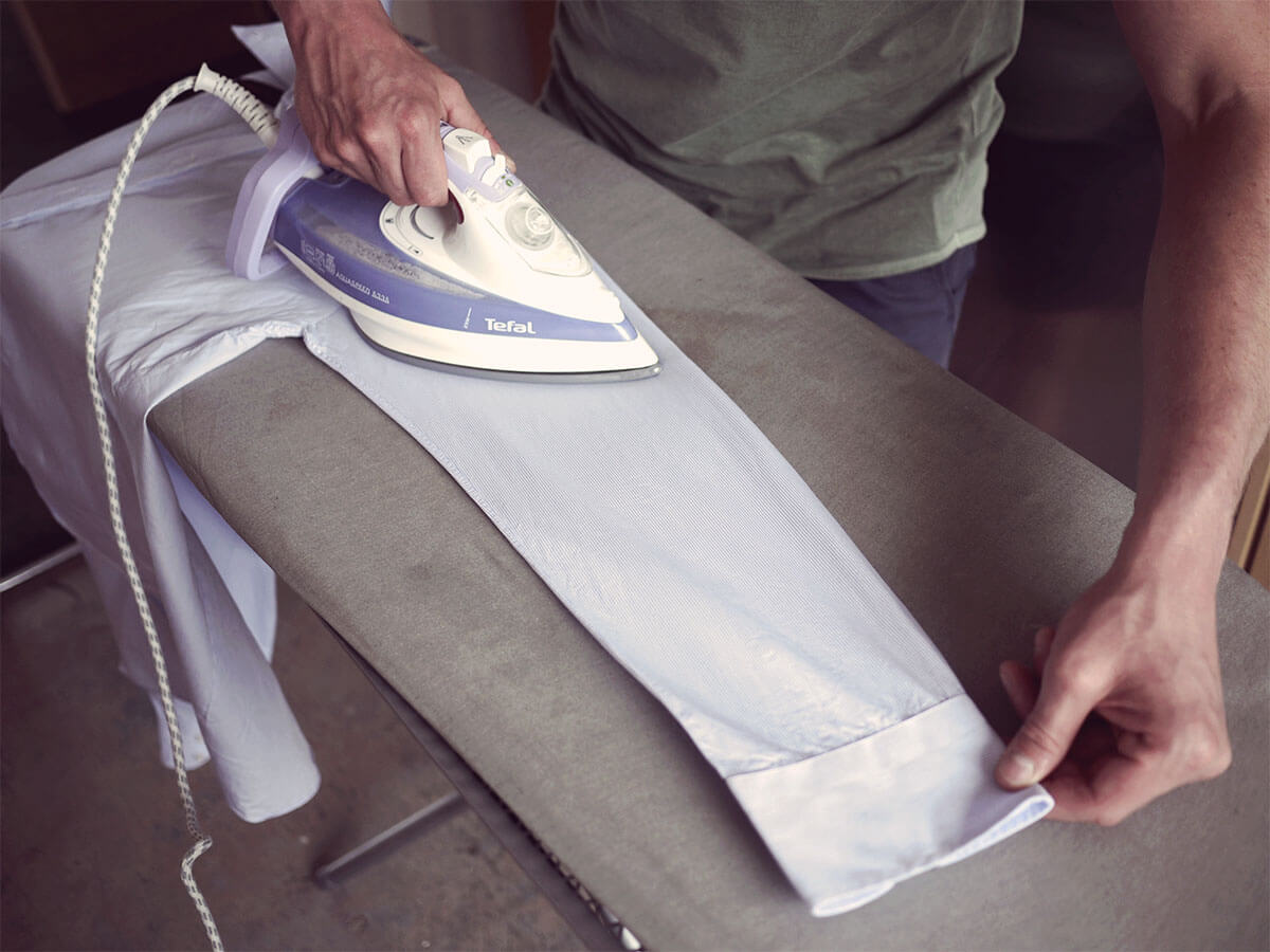 Features ironing white shirt