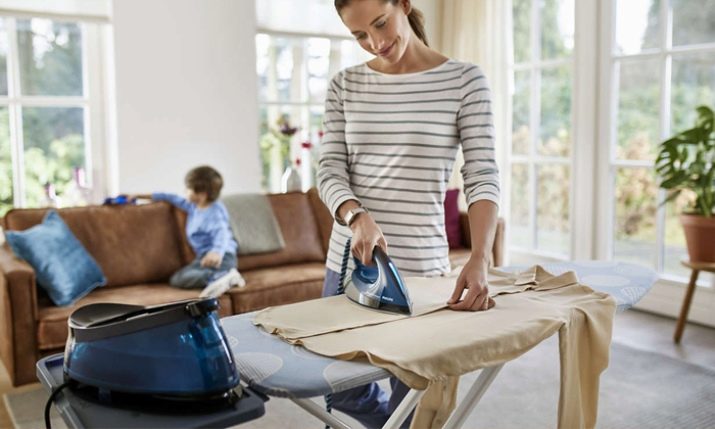 When choosing an iron should pay attention to the model with a narrow spout and a built-in steam generator. Ironing board must be selected with a separate wrist strap.