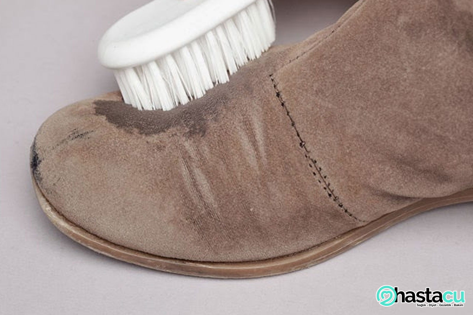 To remove unpleasant stains, just sprinkle the desired area with baby powder or talcum powder, leaving for fifteen minutes. After the time is up, you just need to shake off the remnants. Next, with a cloth moistened with alcohol, wipe the dirty area, and then wipe the pile with a special brush. Fat can be removed and the usual dishwashing detergent. It is enough to pour a small amount on the boot and wash it off with a wet rag after twenty minutes.