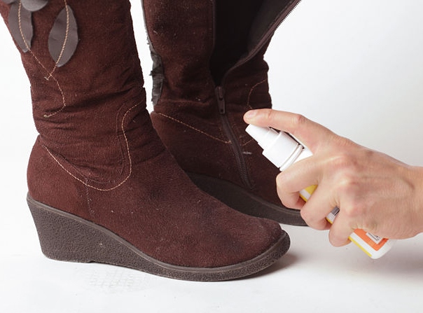The eraser can be stationery or special for suede, it raises the nap and contributes to better color recovery. Specialized sprays are of two types: for painting and for protection. The first helps to return the original look to the boots, painting them in the desired color. The most popular is black, but there are blue and brown shades on sale. The protective agent performs the function of repelling water; a colorless spray creates an invisible, thin film on the surface that prevents moisture from penetrating inside.