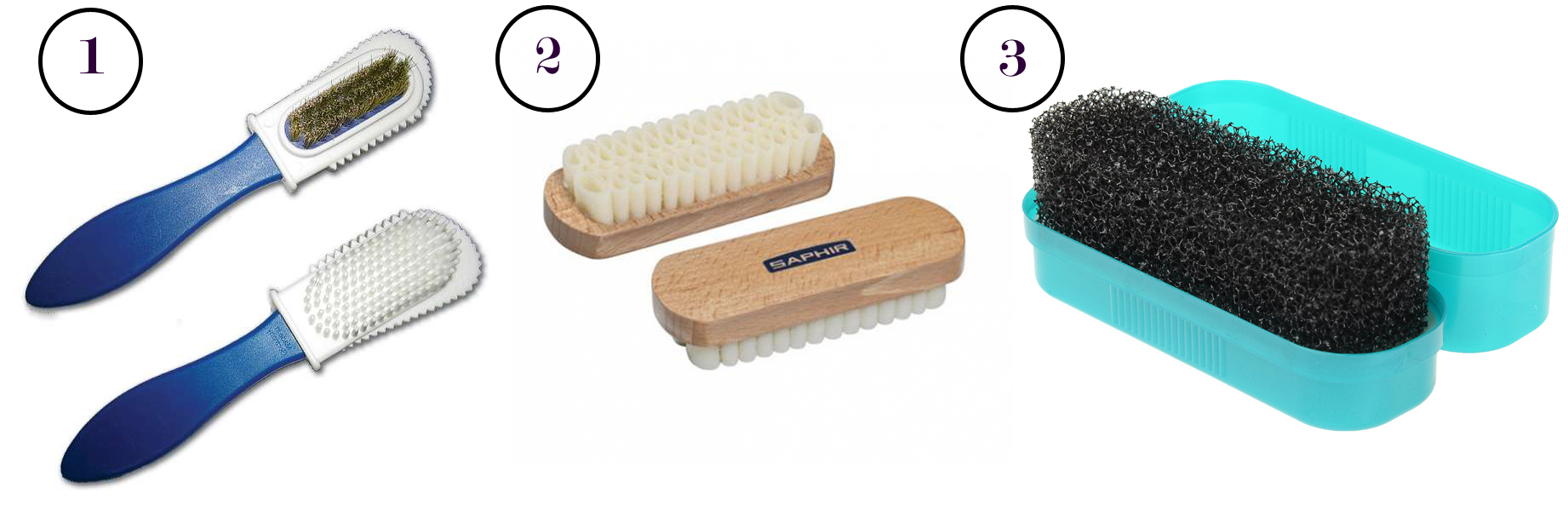 Brushes differ in material and type of pile. There are metal, rubber and polymer. The first copes with the old, worn shoes. The second two are designed for resuscitation of new shoes. All brushes raise the pile, thereby giving it a more fresh look, and also clean it from all sorts of dirt.