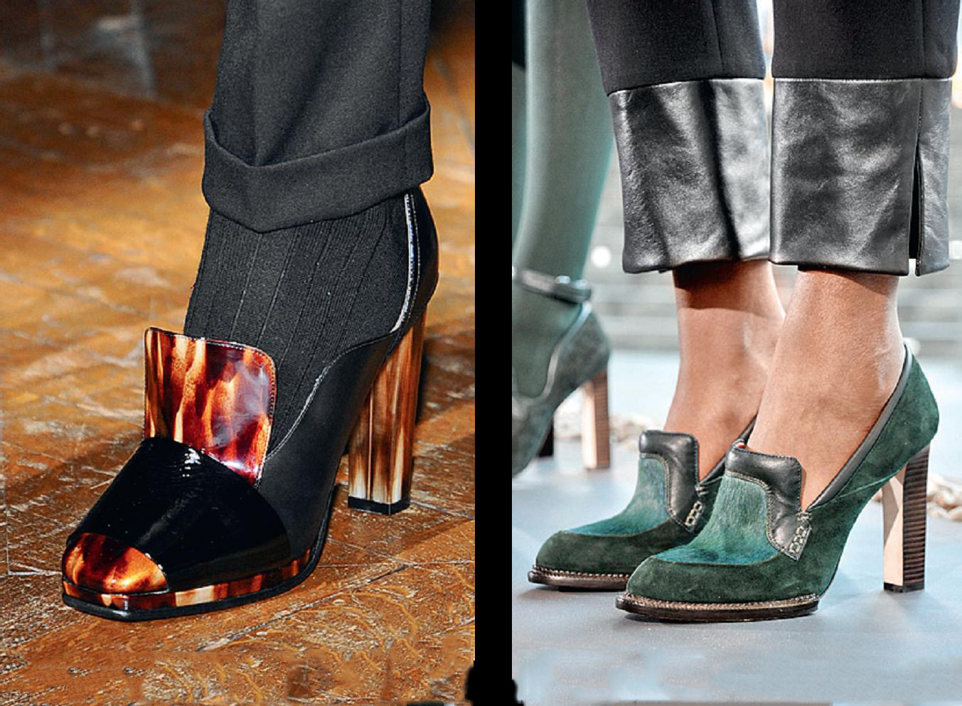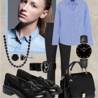 - High-heeled loafers can easily fit into an office dress code. They can be combined with strict business suits, shirts and blouses. You can experiment with deliberately masculine images, and you can give preference to a more feminine, romantic bow. By the way, models in heels look great with short pants.