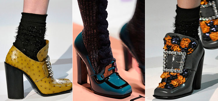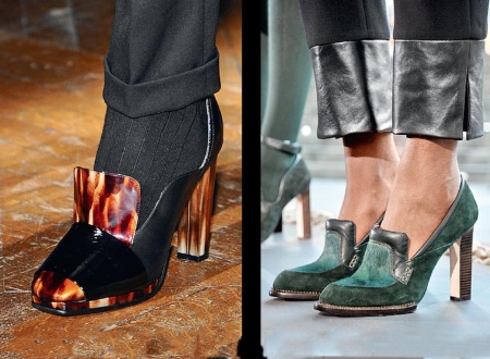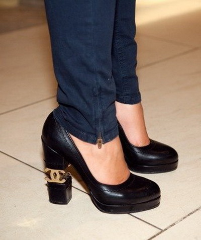 - Unusual will look models with thick heels in combination with breeches or shorts. Wear them over thick tights, additionally you can wear leggings if you are not afraid of heightened attention to your legs.