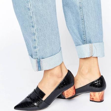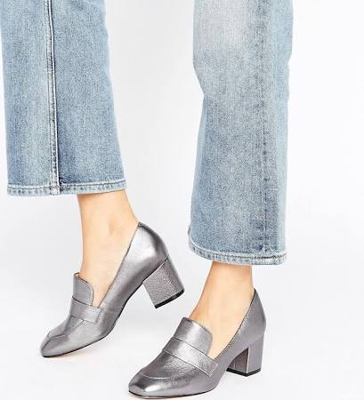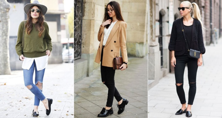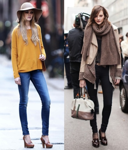 - Pair casual loafers with heels with slim jeans and a loose sweater. Complement the image of a jacket-jacket or overcoat-oversize. ?