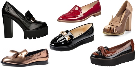 Over time, designers began to experiment and make female models more elegant and sophisticated. So loafers appeared on wedges and heels. Today there is a wide small heel, a breathtakingly high thick heel and even a thin hairpin.