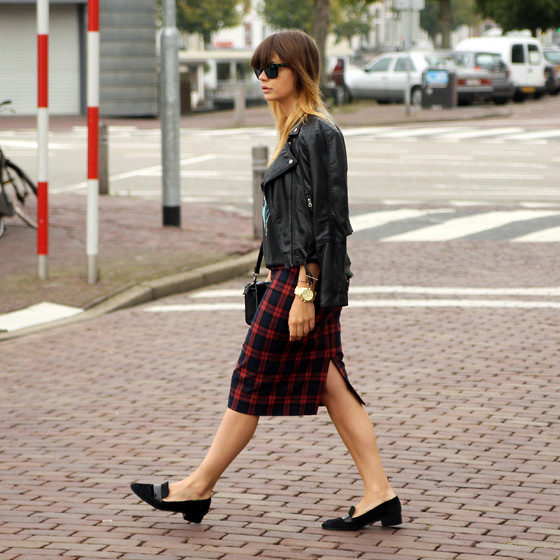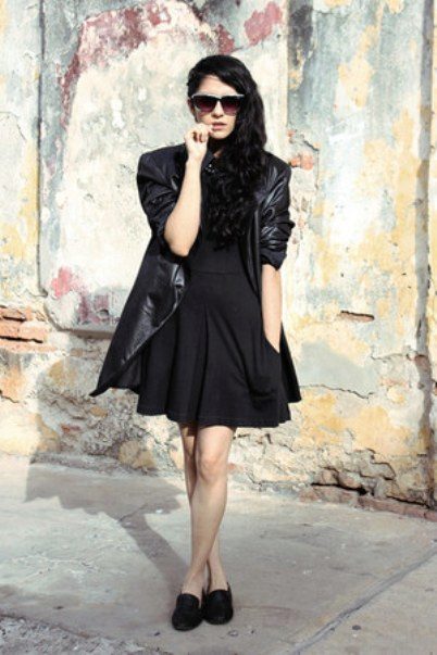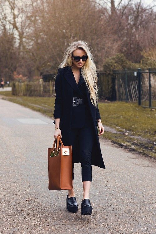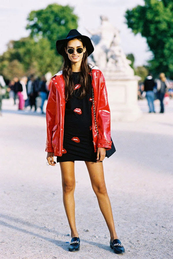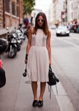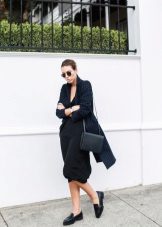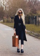 Rare and at the same time stunning style - this is a leather dress and loafers on the platform. Despite the apparent bulkiness, they perfectly complement the clothes made of leather. It is best to choose a black dress, but gray is also quite appropriate. You can complete the look with a fitted or slightly loose black jacket.