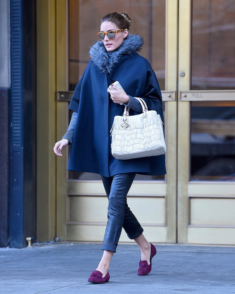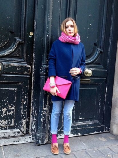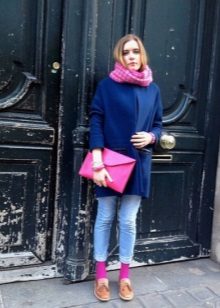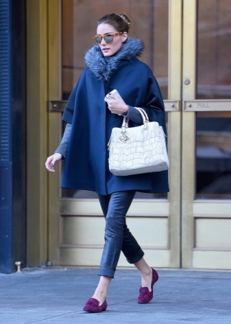 With loafers you can create dozens and hundreds of spectacular images. The hipster style so popular among young people was not left unattended by the fashion designer. If you are close to this style, it is very important to choose the right shoes. It should not be overwhelmed by the decor, ideally - if it is almost a male version. Cocoon coat, vest and skinny, as well as a small lacquered handbag on a long strap - and the image is ready.