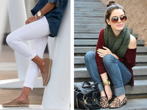 Loafers are good because they can be freely worn with different styles of clothing. Attractive is a combination of beige or cognac-colored shoes with a white or black top. Loafers look great with short pants and shorts. They are suitable for jeans and miniskirts, as well as dresses with a high waist.