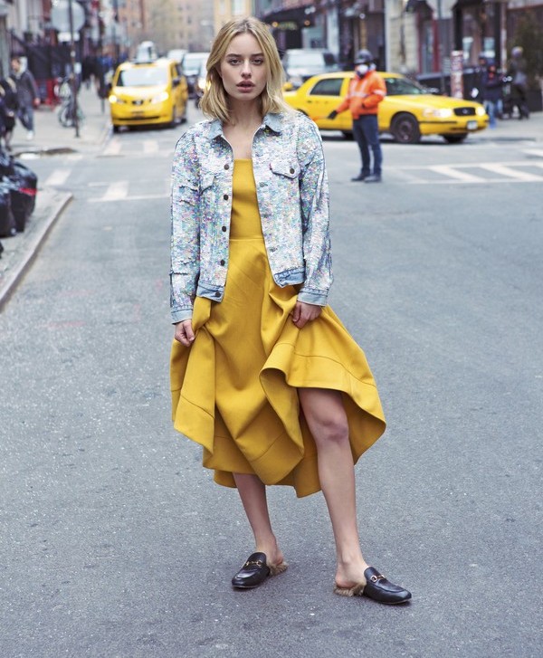 You can pick up the fluttering dress, complementing them with a sheepskin coat or a leather jacket.
