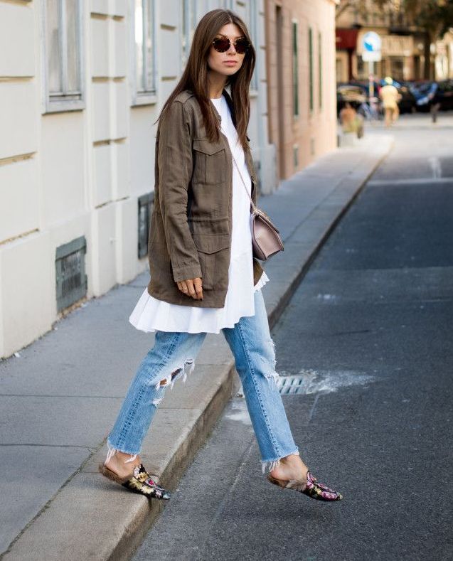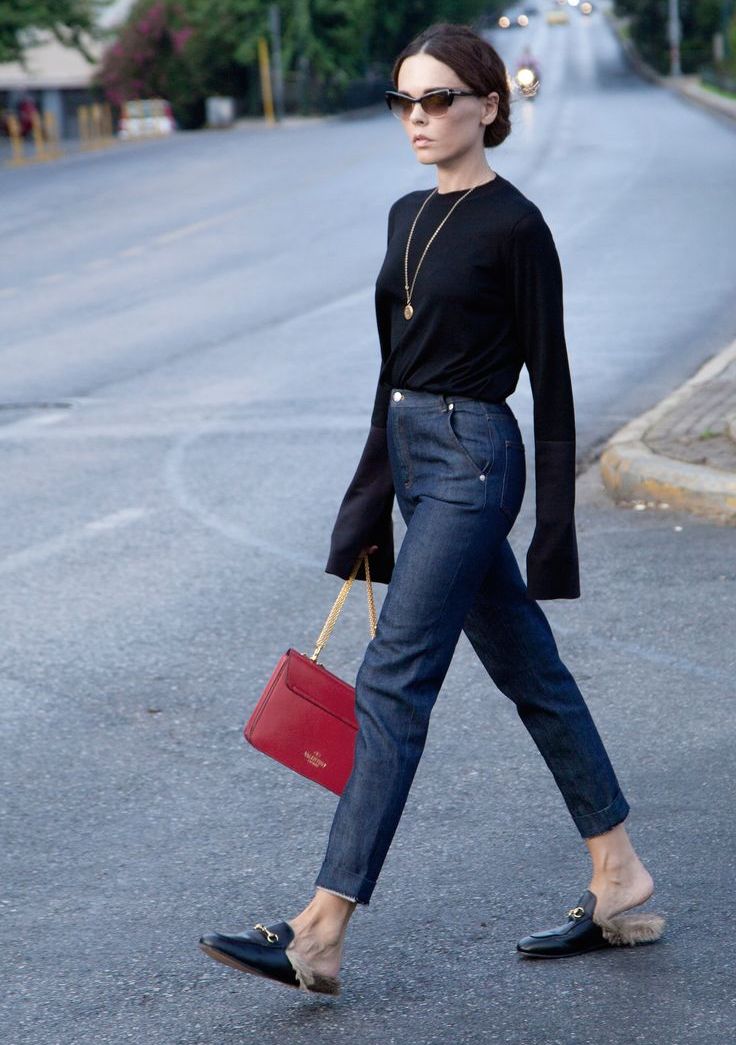 Loafers in combination with skinny jeans and a spacious top will create the best look for walking.