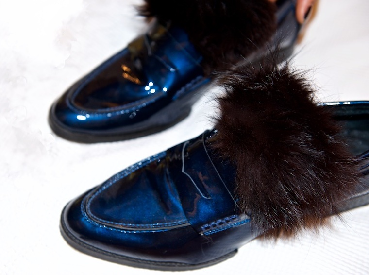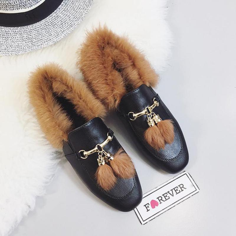 Often, fur has a decorative function. It can be in the form of fur pompons or fur fringe, located along the top of the shoe. Heat in such models plays a secondary role. Especially interesting are fur loafers without a backdrop.