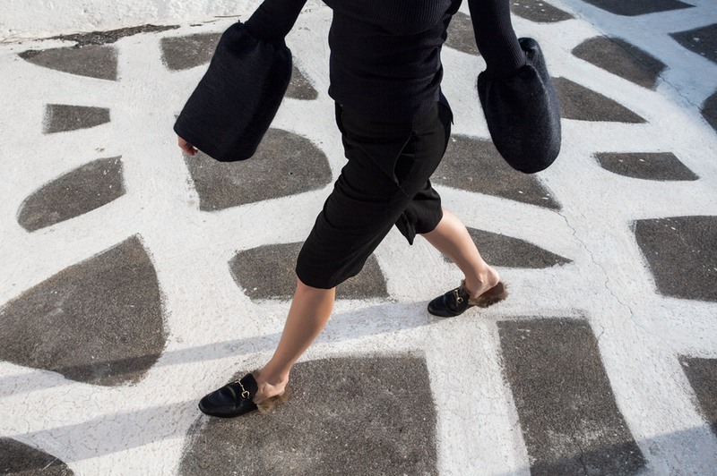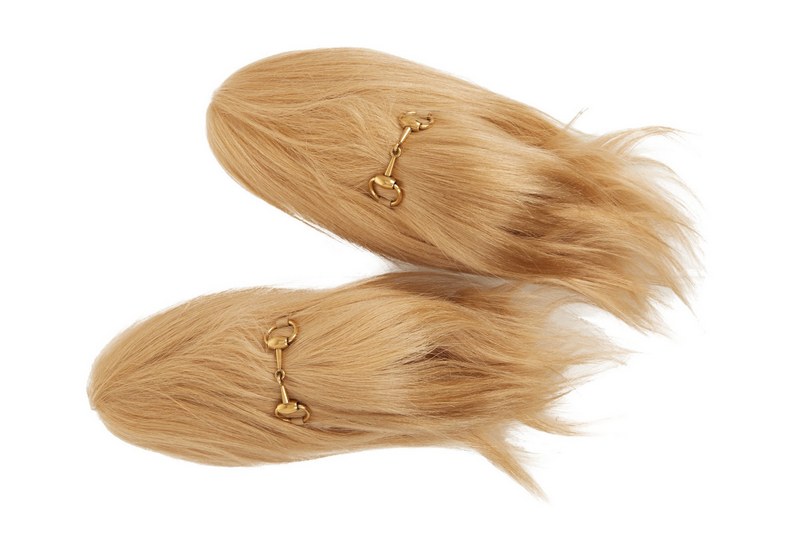Creative director of Gucci Alessandro Michele made sure that the legs of the fans of the brand were warm. Instead of a simple insole in leather loafers with an open heel and a gold buckle from the Italian debut collection - fur. It should be noted that the price of this shoe is quite high, this is due to the high cost of fur. Gucci loafers use natural kangaroo fur.