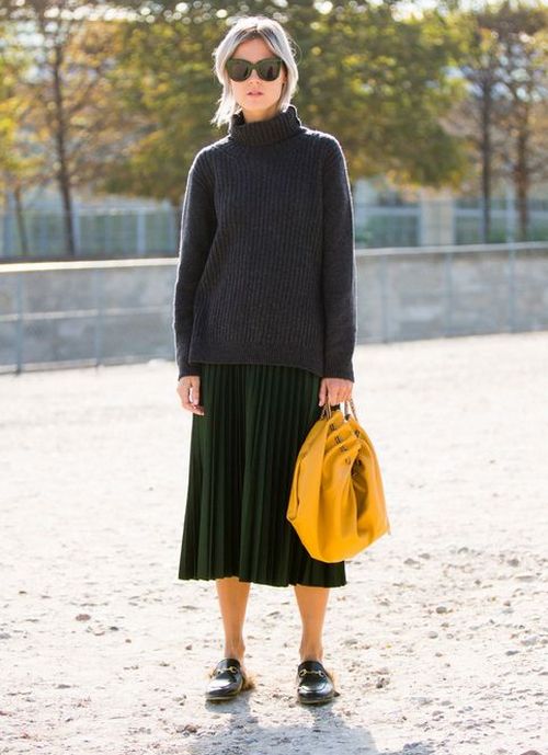 This is a great combination. The main thing is to choose the right length. The image consisting of a pencil skirt and a simple sweater looks very impressive.